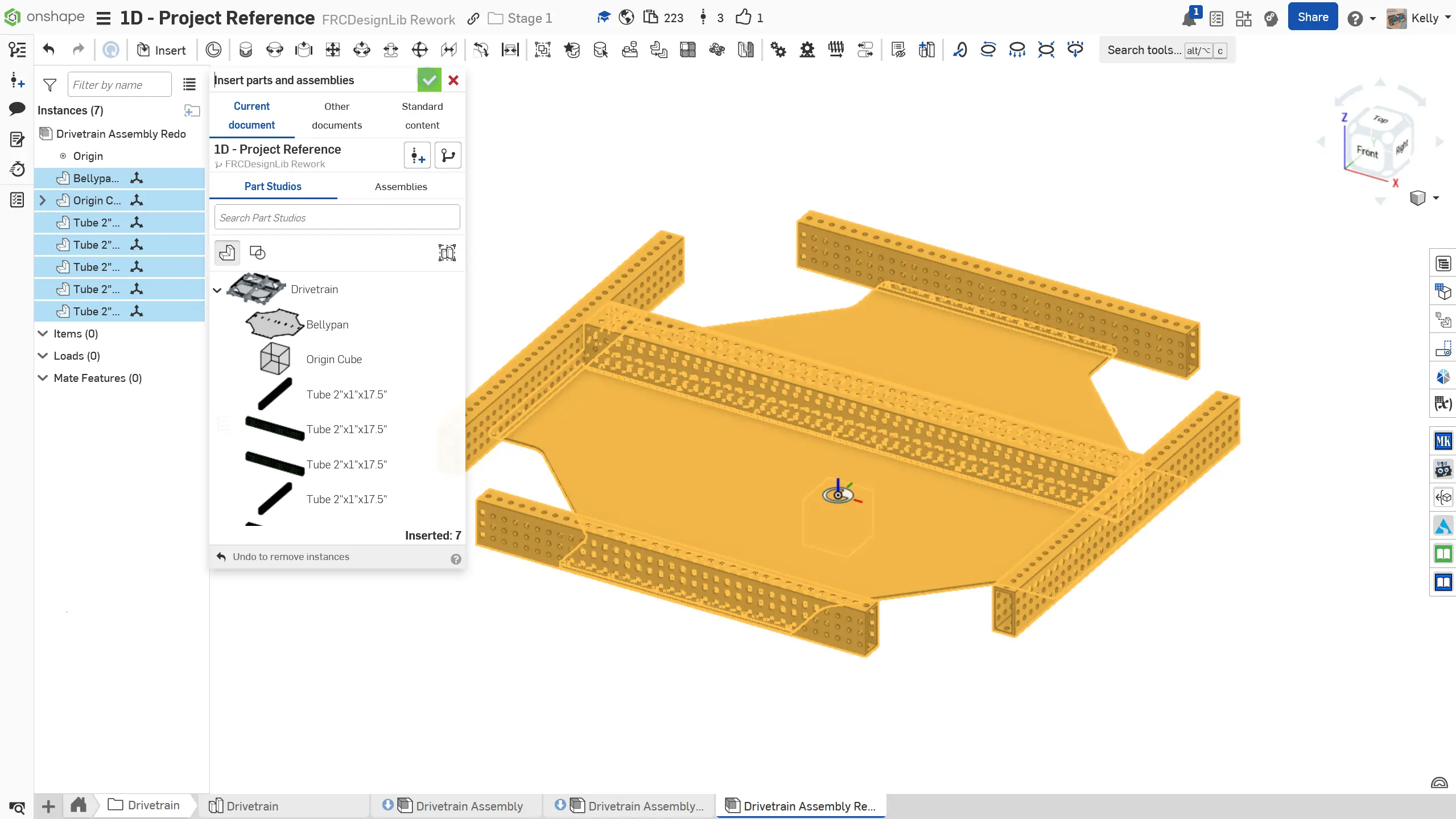 Now that the part studio is finished, you can create the drivetrain assembly.