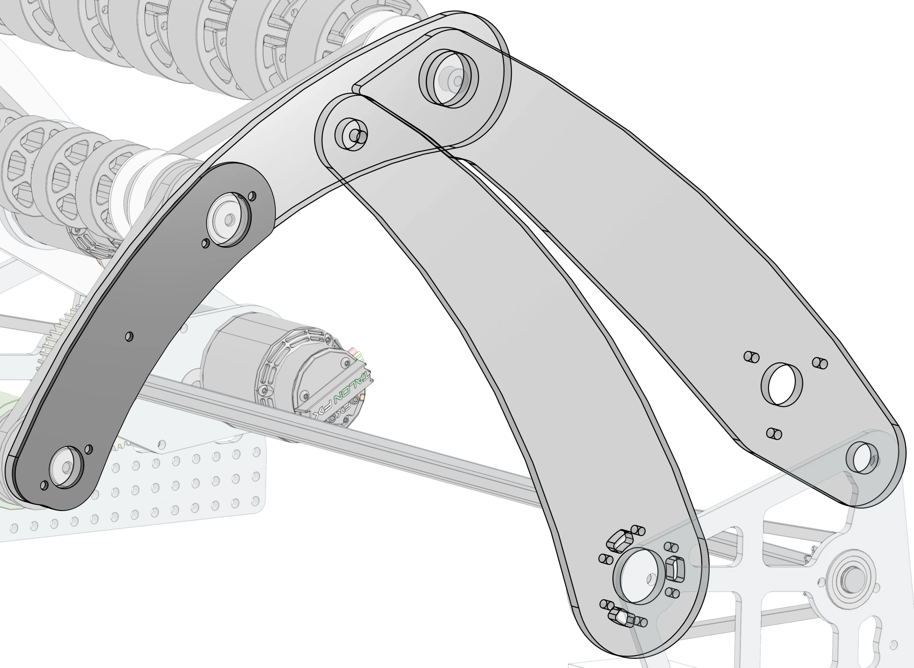 4 bar OTB intakes are built to pull gamepieces off the floor and into the robot, but to do so they put themselves in a precarious situation. Sitting outside the robots frame perimeter, they are susceptible to damage from collisions with the field and other robots. All OTB intake designs are heavily influenced by the design requirements to be robust against impacts and damage, fast, and light.