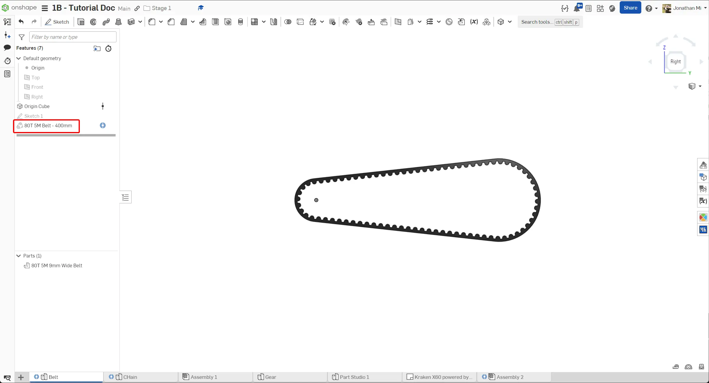 To model belts, you will need two featurescripts, the Origin Cube Featurescript and the Belt & Chain Gen Featurescript. In order for the Belt & Chain Gen Featurescript to create the belt, it needs the pitch diameter of at least two pulleys or sprockets and a correct center to center distance, both of which will use the functions from the Origin Cube featurescript.