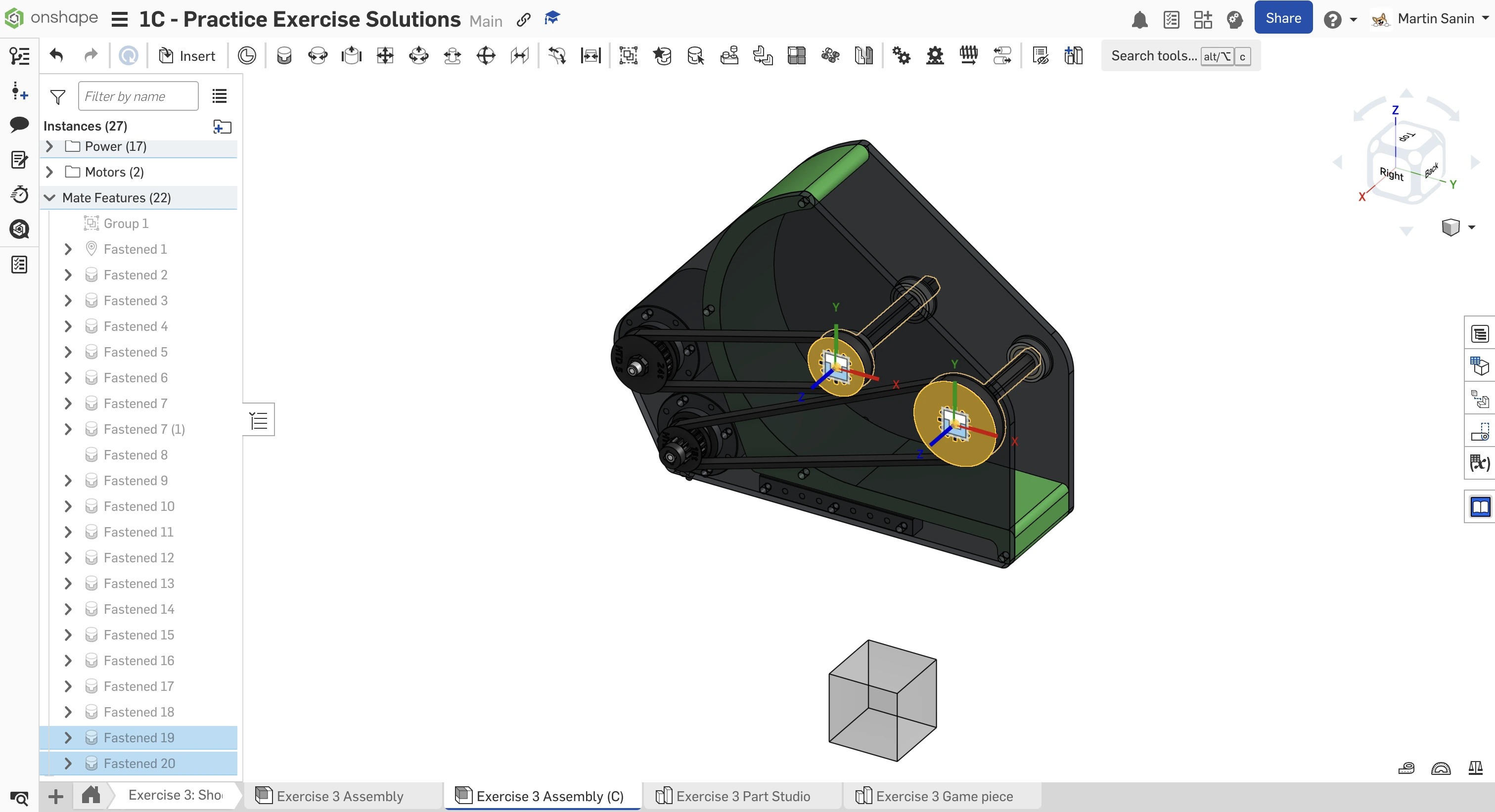 Navigate to the "Exercise #3 Part Studio" tab in your copied document and follow the instructions in the slides to complete the part studio for this exercise.
