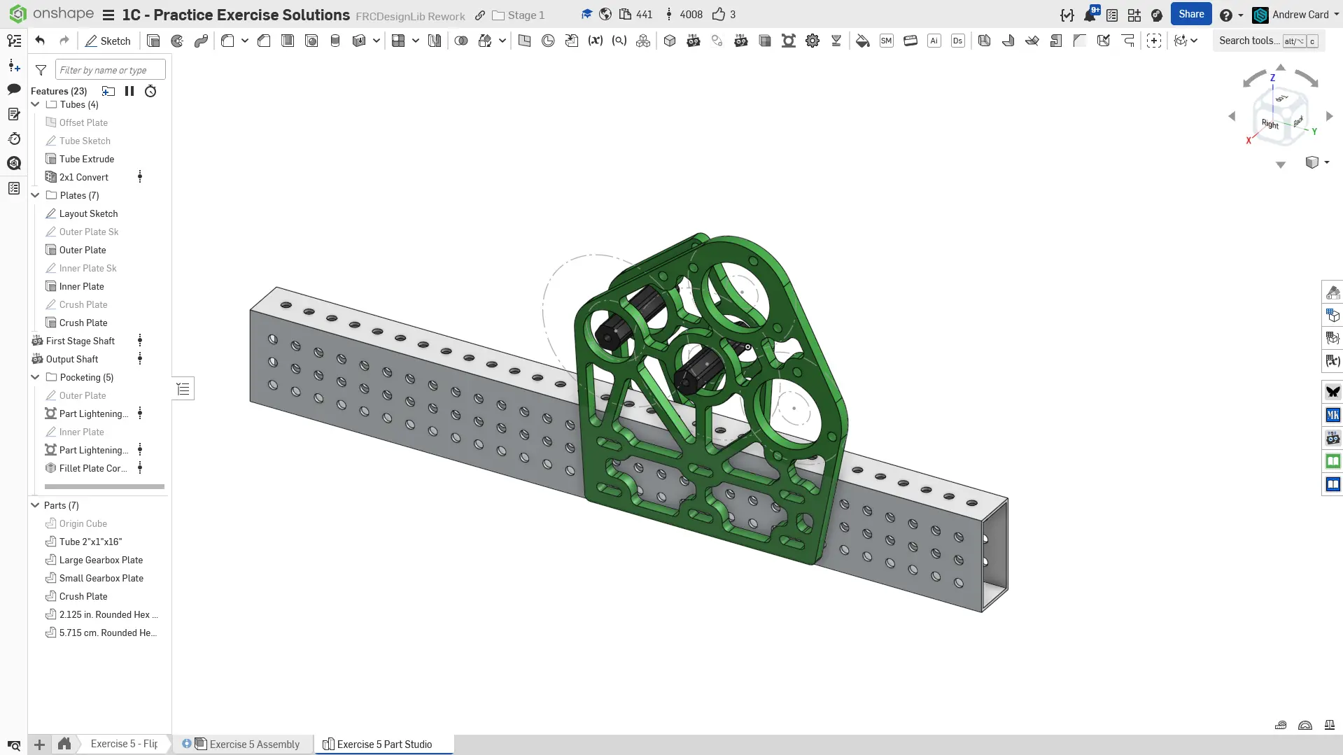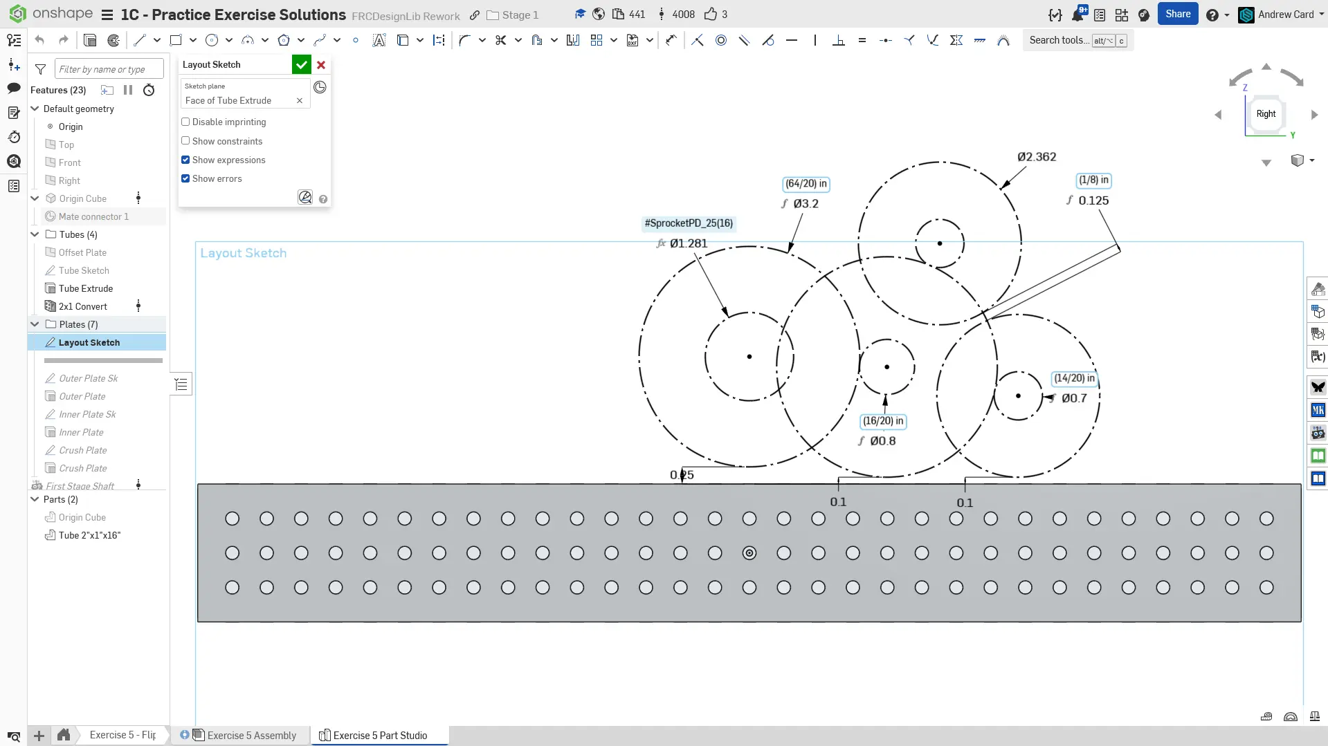 Navigate to the "Exercise #5 Part Studio" tab in your copied document and refer to the solution document to complete the part studio for this exercise. The following instruction slides only provide a general outline and some key details.