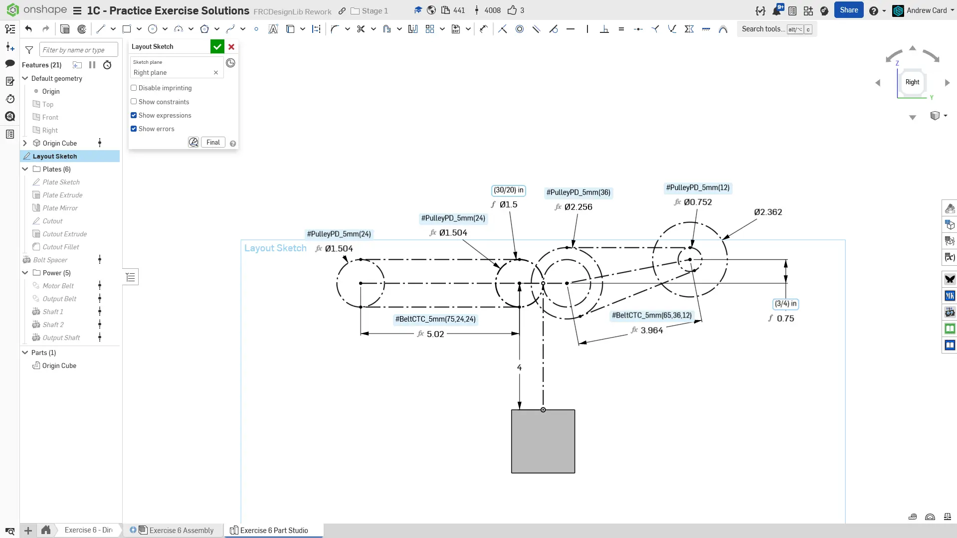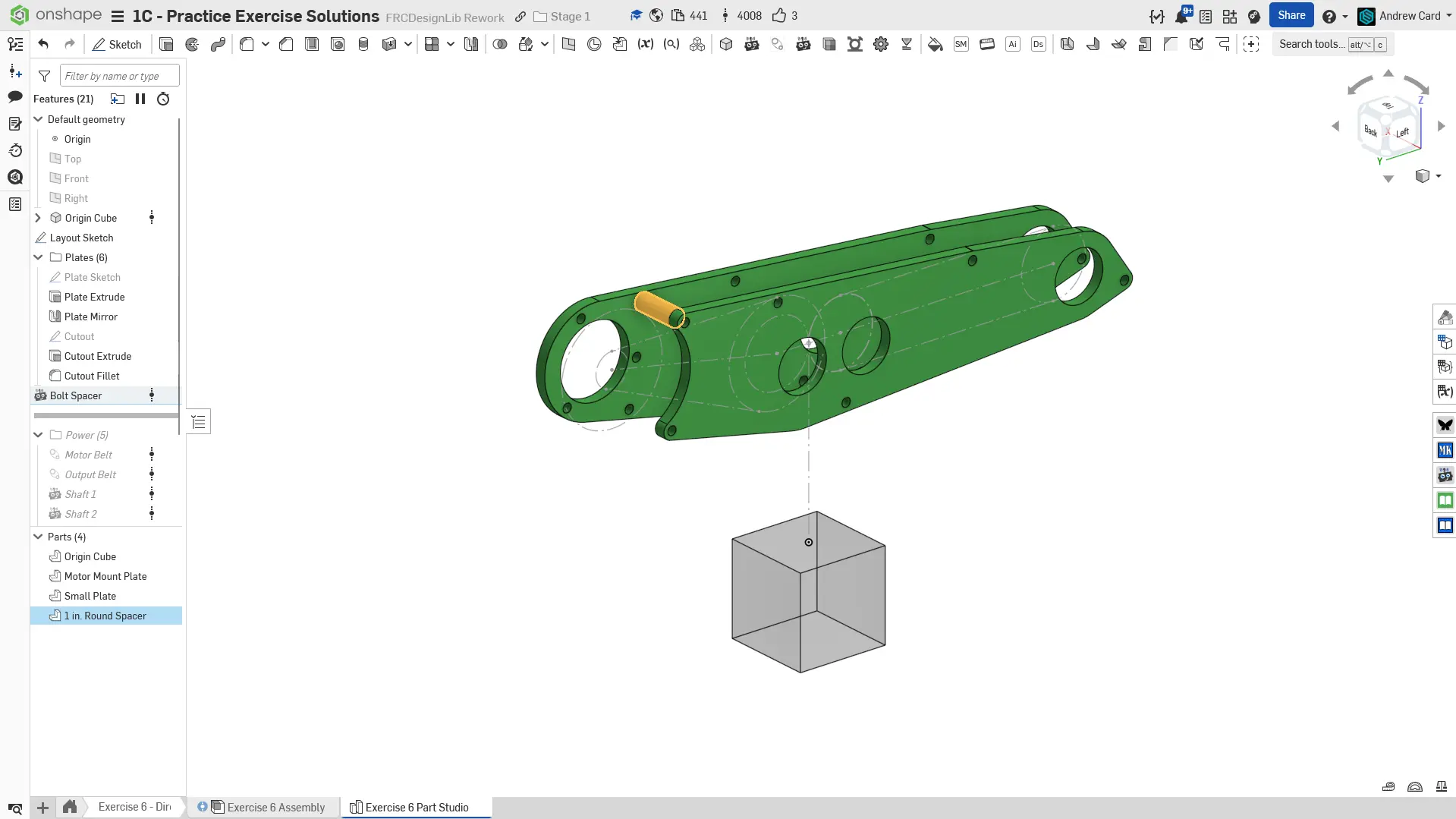 Navigate to the "Exercise #6 Part Studio" tab in your copied document and refer to the solution document to complete the part studio for this exercise. The following instruction slides only provide a general outline and some key details.