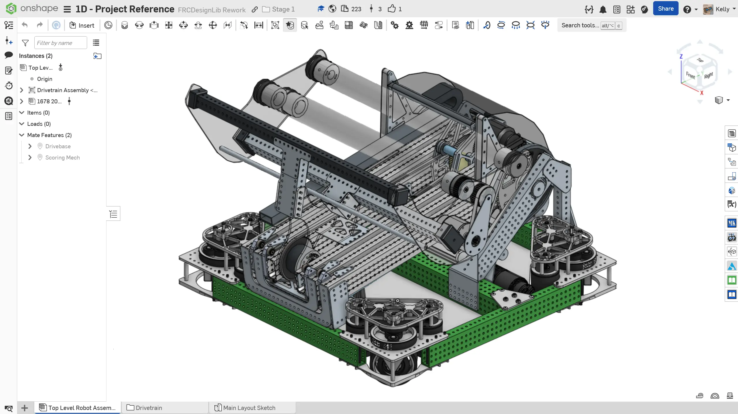 You will create a top level robot assembly to go with your drivebase. The mechanism you'll be adding is the scoring mechanism from 1678's 2023 robot. The scoring mechanism CAD can be accessed from here: